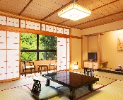 全ての客室より鶴仙渓を一望。温泉は源泉より引くまろやかな湯を、大浴場・露天風呂・立ち湯でお愉しみいただけます。